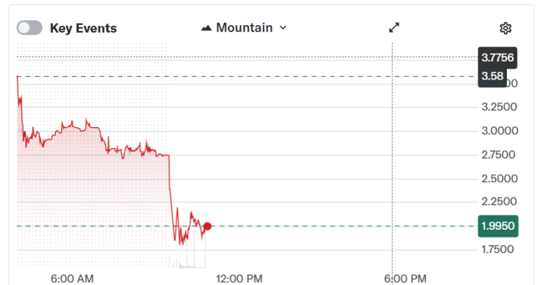 The shares are now down roughly 78% from their post-listing peak of $9.31 on Sept. 9, reflecting the broader unwinding in digital assets and the spillover to associated stocks.